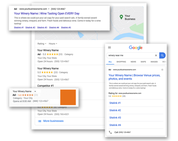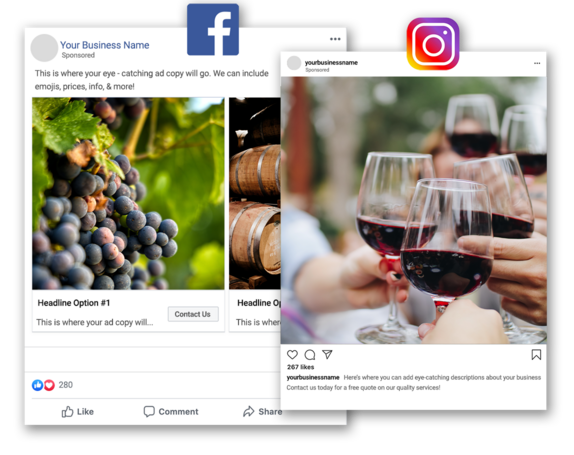 Utilizing Facebook’s advertising platform, we can tap into many different audiences of people on Facebook and Instagram. Social Media advertising has the unique ability to not only target the right Winery customer in the area of your choice, but it also allows social interaction between a customer and the Winery Business. People can comment, like, and share your post with other friends and family. Facebook also has the ability to use video and image ads to engage potential customers. Your customers are Facebook and Instagram, and we’ll use these platforms to reach them directly with your messaging.